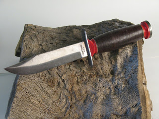Like most people fascinated with knives I would get the Smoky Mountain Knife Works catalog. I remember saving my money and buying all the little survival gadgets (wire saw, harpoon tips, wallet survival tools, etc...). Even with the many pages of "survival' type knives in the SMKWs catalog it took me forever to find a knife I thought of as perfect. For some reason I had it in my head that a knife in the 9-10" range would be the perfect size, I also though that the bowie style blade and double guard would be the ultimate (probably the knife above and the afore mentioned movies). Embarrassingly I ended up purchasing Frost Cutlery survival bowie that measured in at just over 9" complete with saw teeth, hollow handle, and in handle survival kit. I thought it was the greatest even though the blade would not hold an edge and the saw didn't work.